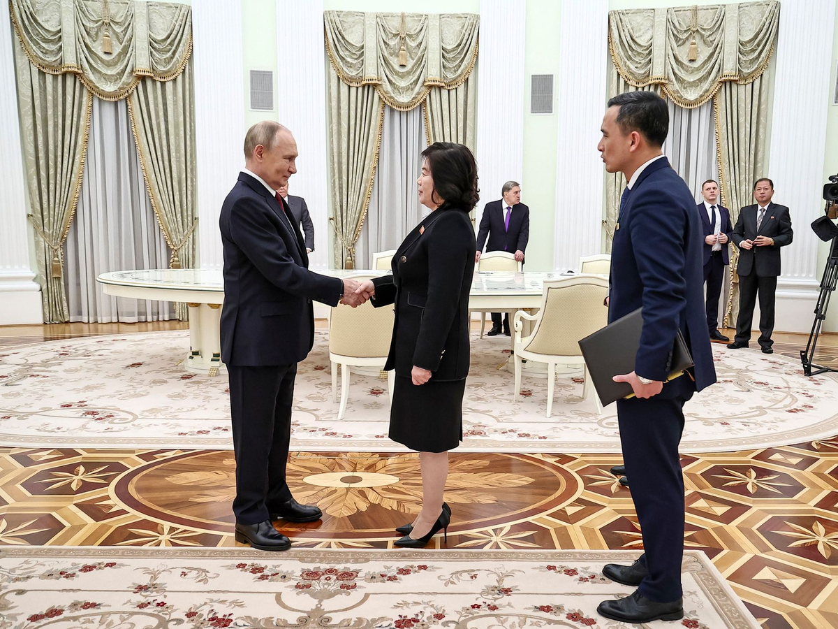 Russlands Präsident Wladimir Putin empfing im Kreml erneut Nordkoreas Außenministerin Choe Son Hui. Gesprächsinhalte drangen nicht nach außen. Klar ist aber, dass Nordkorea den Nachbarn Russland im Angriffskrieg gegen die Ukraine unterstützt. Choe war zuletzt im Januar im Kreml zu Gast gewesen - und erklärte am Freitag bei einem Treffen mit ihrem russischen Amtskollegen Sergej Lawrow, Nordkorea werde Russland im Krieg bis zum Sieg helfen.