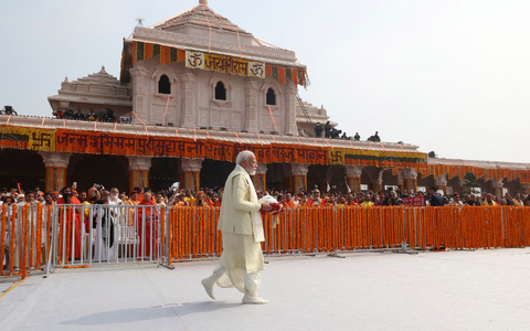 Die Einweihung des Heiligtums sehen Analysten auch als inoffiziellen Wahlkampfauftakt des Premiers, der seit zehn Jahren im Amt ist und bei der Parlamentswahl in wenigen Monaten auf eine dritte Amtsperiode hofft. Mit dem Bauwerk - einem alten Wahlversprechen - will Modi die hinduistische Mehrheit begeistern, die in dem multireligiösen Land 80 Prozent der Bevölkerung ausmacht.