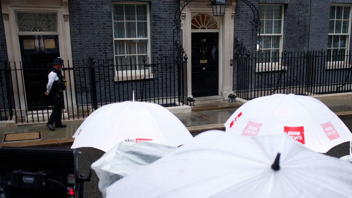 Umbruch in Großbritannien: Journalisten warten in der Downing Street. - Foto: David Cliff/AP/dpa