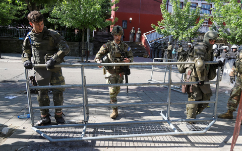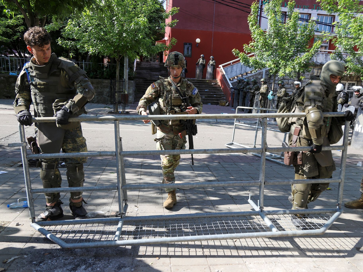 30.05.2023 - 14:27:19 | dpa.deNach Zusammenstößen mit der internationalen Kosovo-Schutztruppe KFOR haben serbische Bewohner in drei Gemeinden im Norden des Landes ihre Proteste fortgesetzt. Die Kundgebungen vor den Gemeindeämtern der Orte Zvecan, Leposavic und Zubin Potok verliefen am Dienstag zunächst friedlich, wie örtliche Medien berichteten. Am Montagnachmittag hatten sich militante Serben in Zvecan Straßenschlachten mit einer Einheit der Nato-geführten KFOR geliefert.