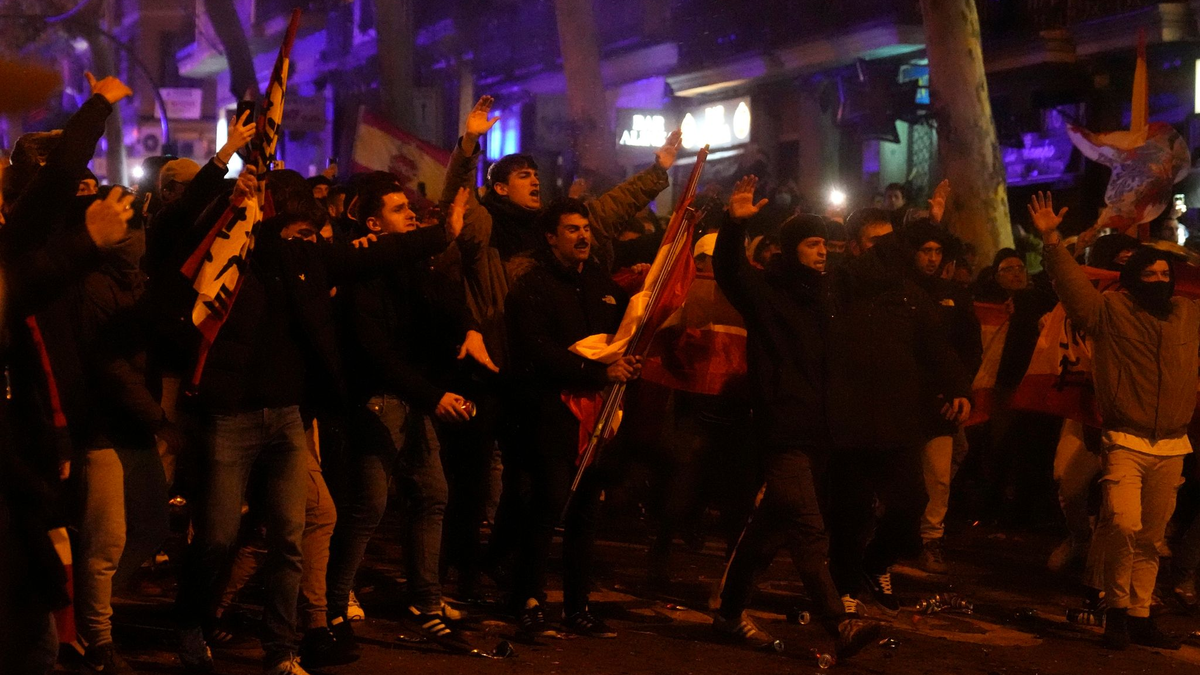 Ein Teil der Demonstranten bewarf die Polizei am Dienstagabend mit Steinen und anderen GegenstÀnden, einige zeigten den Hitlergruà und schwenkten Fahnen der Franco-Diktatur, wie auf Fernsehbildern zu sehen war. Die Polizei setzte TrÀnengas und Schlagstöcke gegen offensichtlich rechtsradikale Teilnehmer der Kundgebung ein. Medienberichten zufolge wurden mindestens sechs Demonstranten und ein Polizist leicht verletzt, drei Menschen wurden festgenommen.