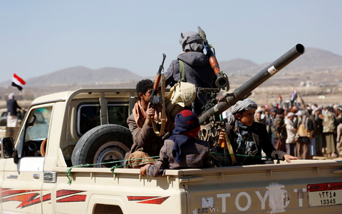 • Huthi-Kämpfer und Stammesangehörige bei einer Kundgebung gegen die Angriffe der USA und Großbritanniens. - Foto: -/AP/dpa