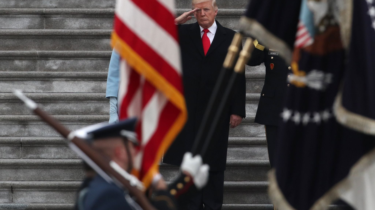 • Der neue PrĂ€sident und dessen Vize inspizieren Einheiten des US-MilitĂ€rs bei einem Parademarsch am Kapitol.