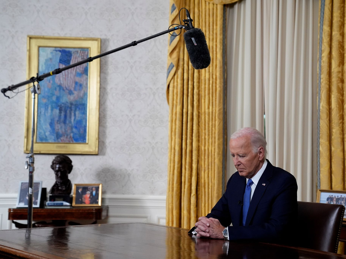 Der bedeutenden Rede aus dem Amtszimmer des Präsidenten, dem Oval Office, gingen chaotische Wochen im US-Wahlkampf voraus. Ende Juni versagte Biden in einem TV-Duell gegen seinen republikanischen Herausforderer Donald Trump kläglich. Für den Demokraten war es wohl der Anfang vom Ende seiner politischen Karriere. Der Auftritt war so desaströs, dass in den USA eine Debatte über seine Eignung als Präsidentschaftskandidat für die Wahl am 5. November entbrannte. Immer mehr Parteikollegen forderten seinen Rückzug aus dem Rennen ums Weiße Haus. Biden klammerte sich an der Macht fest. Das Land hielt kurz den Atem an, als Trump vor rund anderthalb Wochen bei einem Attentat verletzt wurde.