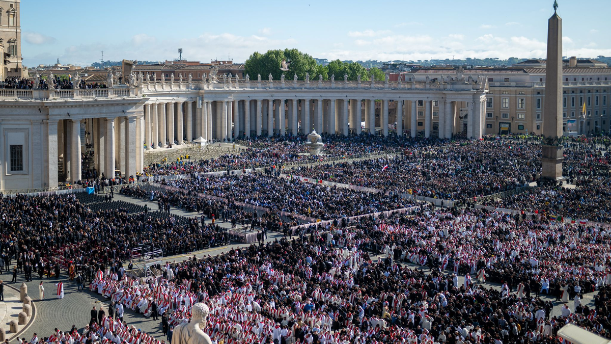 Ein Blick über den Petersplatz während der Trauerfeier für Papst Franziskus. - Foto: Michael Kappeler/dpa