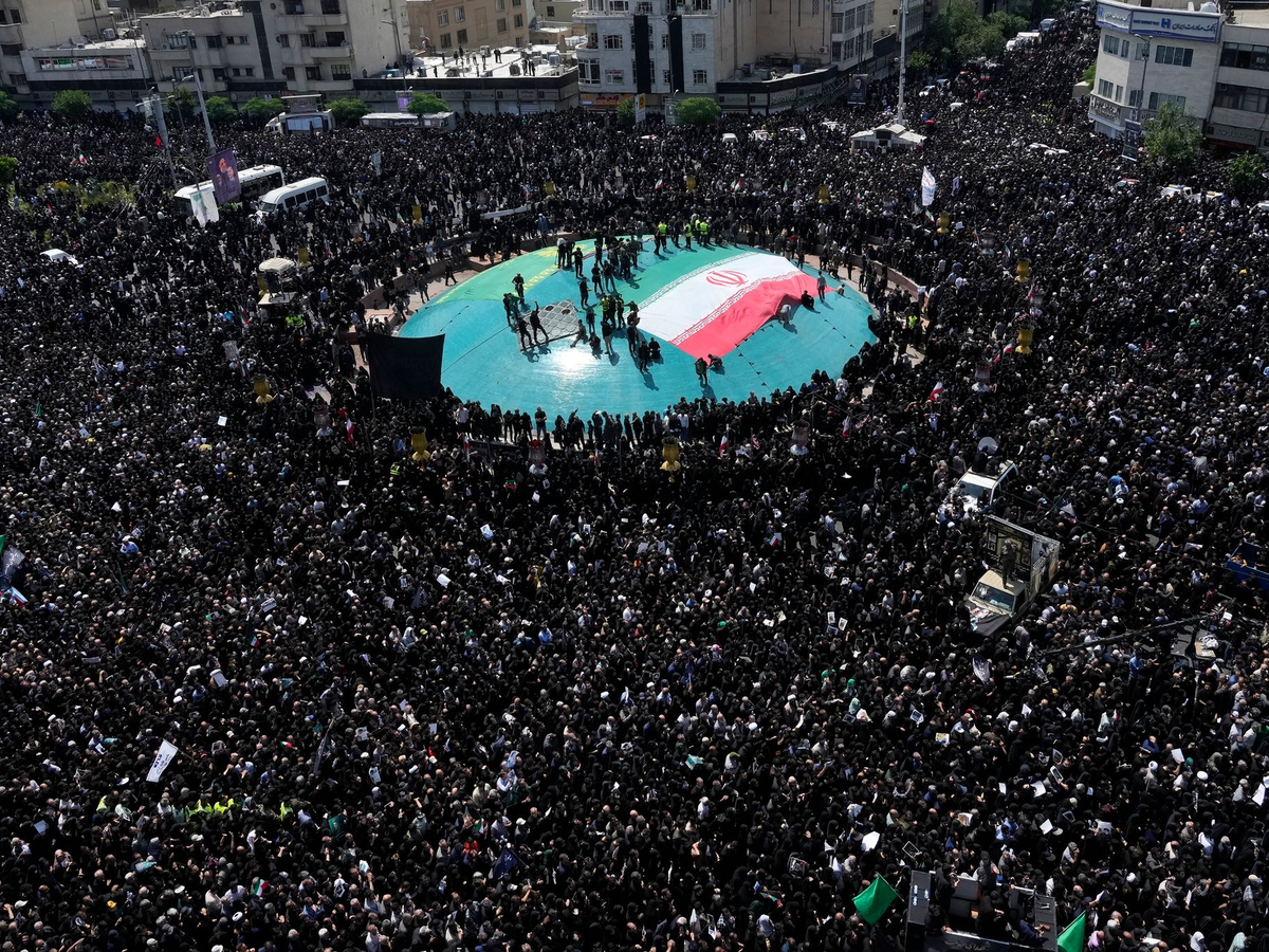 Der Trauerzug machte sich daraufhin von der UniversitĂ€t Teheran in der Stadtmitte auf den Weg Richtung Freiheits-Platz im Westen der Stadt. Die StraĂen waren ĂŒberfĂŒllt mit trauernden RegierungsanhĂ€ngern, die Abschied von den StaatsmĂ€nnern nahmen. Neben zahlreichen hochrangigen Vertretern der Politik und des MilitĂ€rs nahmen laut Agentur Isna auch auslĂ€ndische GĂ€ste an der Zeremonie teil, wie etwa Hamas-Auslandschef Ismail Hanija. Chamenei hatte eine fĂŒnftĂ€gige Staatstrauer bis zum Freitag angeordnet.
