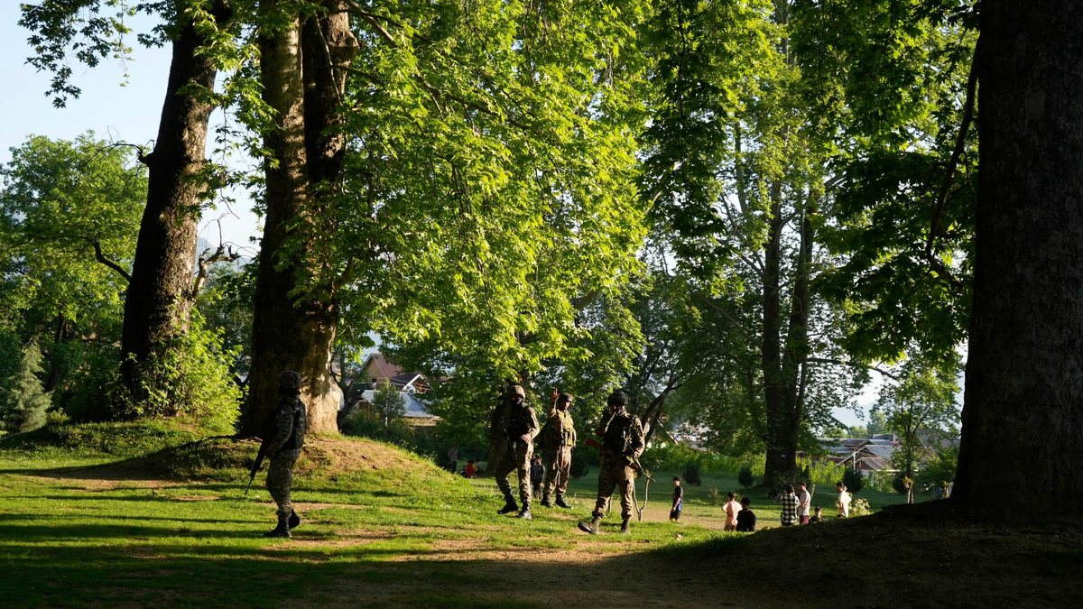 • Indische paramilitärische Soldaten bewachen einen Garten am Stadtrand von Srinagar im indisch kontrollierten Kaschmir. (Archivbild) - Foto: Mukhtar Khan/AP/dpa