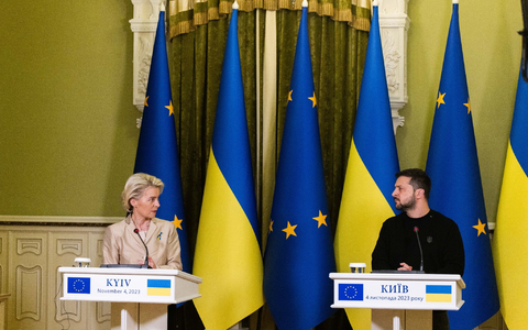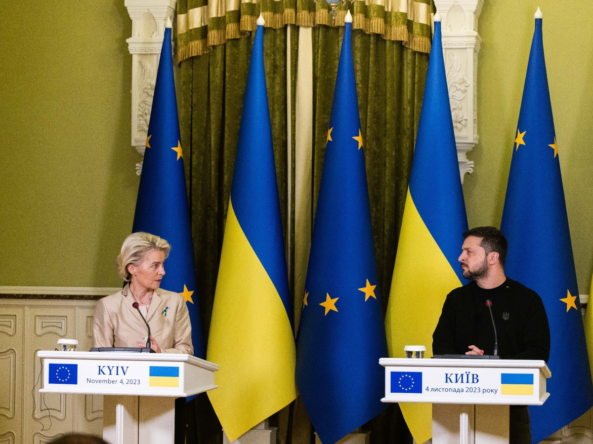 Die Kommissionspräsidentin war am Morgen zu ihrem sechsten Besuch in der Ukraine seit dem russischen Angriff vor gut 20 Monaten eingetroffen. Am kommenden Mittwoch legt sie in Brüssel den Bericht zu den Reformfortschritten der Ukraine vor. Auf dieser Grundlage wollen dann im Dezember die Staats- und Regierungschefs der Europäischen Union entscheiden, ob die Beitrittsverhandlungen mit der Regierung in Kiew gestartet werden sollen. Die EU hatte die Ukraine schon im vergangenen Jahr wenige Monate nach der russischen Invasion zum Beitrittskandidaten gemacht.