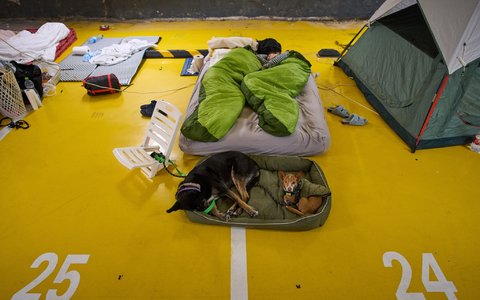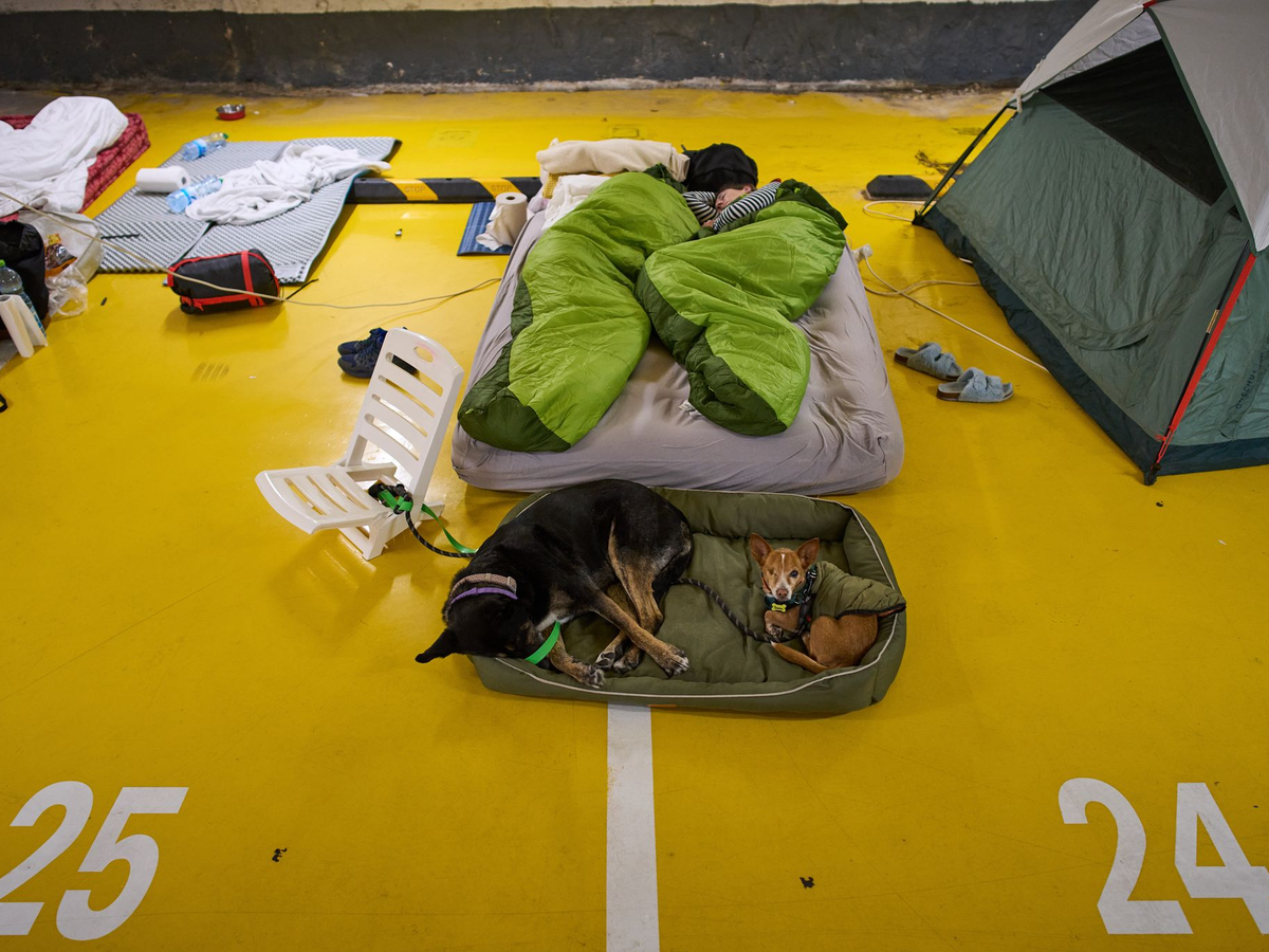 Viele Menschen ĂŒbernachten in SchutzrĂ€umen