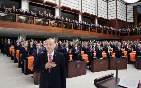 Von seiner AK-Partei und ihren Partnern bekam Erdogan Applaus, Mitglieder der Oppositionsparteien missachteten die Regeln und standen aus Protest nicht auf. Die Zeremonie endete mit 101 Salutschüssen.