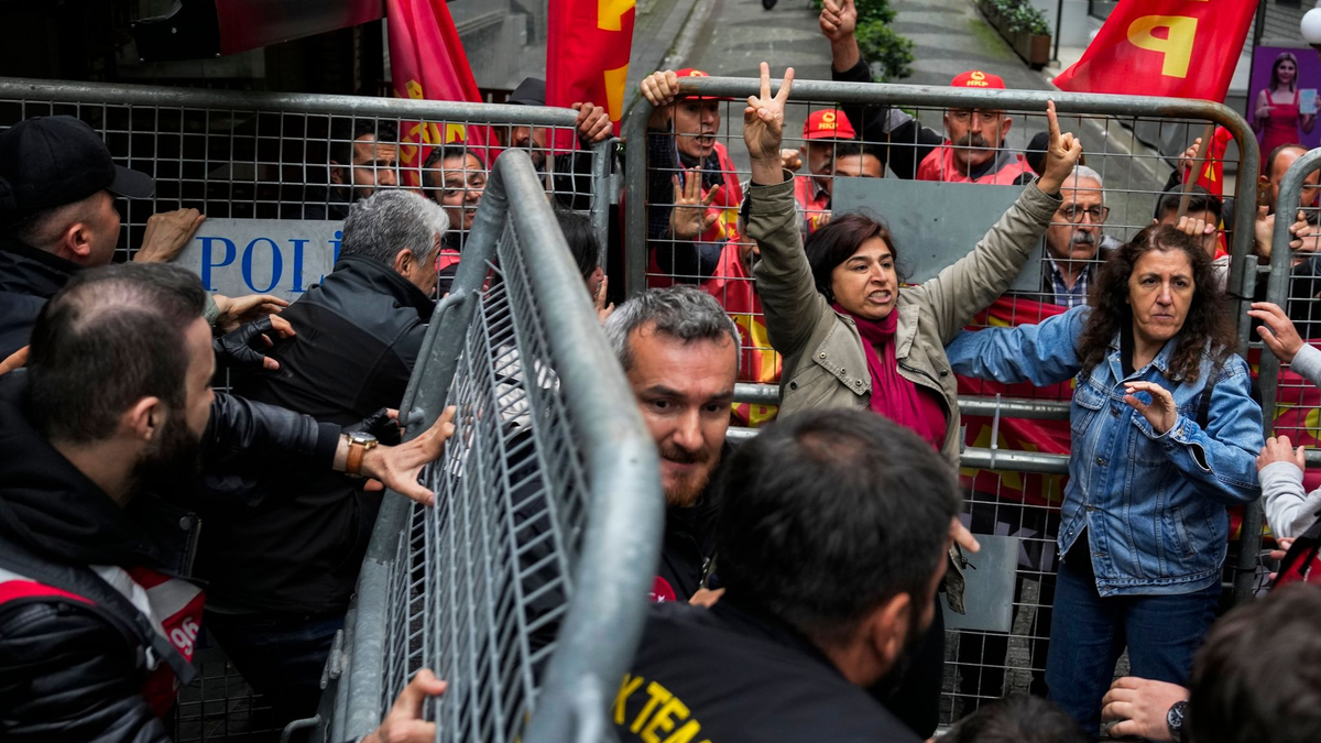 01.05.2024 - 17:33:47 | dpa.deDie tĂŒrkische Polizei hat in der Millionenmetropole Istanbul einen Protestmarsch anlĂ€sslich des Maifeiertags zum symbolisch wichtigen Taksim-Platz verhindert. Sie setzten dabei am Mittwoch TrĂ€nengas gegen Protestierende ein, wie Aufnahmen des Senders CNN TĂŒrk zeigten. Es war auch Gerangel zwischen Demonstranten und Polizei zu sehen. SicherheitskrĂ€fte blockierten in mehreren Reihen den Weg vom Stadtteil Sarachane zum mehrere Kilometer entfernten Taksim-Platz. Nach Angaben von Innenminister Ali Yerlikaya wurden 210 Menschen festgenommen.Â