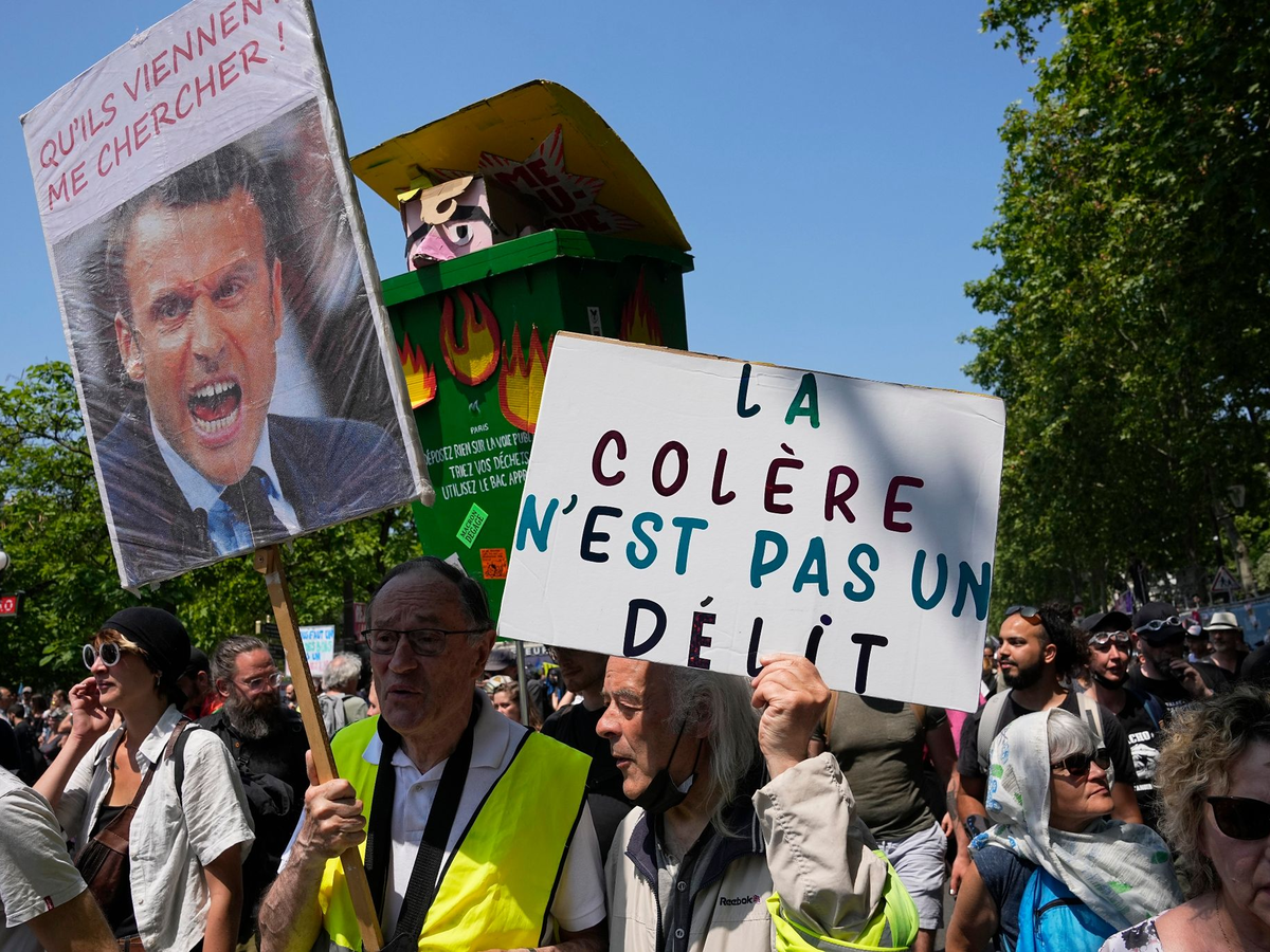 Die Gewerkschaften hatten geschlossen Front gegen die Reform gemacht und Massenproteste mit Hunderttausenden Teilnehmern organisiert. Die Kundgebungen schlugen teils in Gewalt um, nachdem die Regierung die Reform nach turbulenter Debatte ohne Abstimmung durchs Parlament gedrĂŒckt hatte. Das PrĂ€sidentenlager, das keine absolute Mehrheit hat, war sich ausreichender UnterstĂŒtzung durch andere Parteien am Ende nicht sicher gewesen, daher der ungewöhnliche Schritt. Begleitet wurden die Proteste von Streiks bei Bahnen und an den FlughĂ€fen. Wochenlang wurde in Teilen von Paris kein MĂŒll abgefahren.