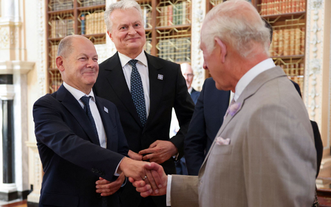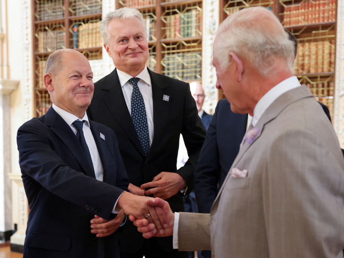 Zu den Teilnehmern gesellte sich am Nachmittag auch Großbritanniens König Charles III., der in der prunkvollen Bibliothek des Schlosses zu einem Empfang lud.