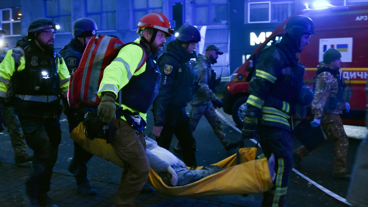 • Vier Tote bei einem Raketentreffer auf Saporischschja, und Rettungskräfte suchen noch nach Vermissten. - Foto: Andriy Andriyenko/AP