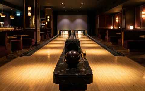 München hat eine Champagner-Bowlingbahn. Das neue „Atoll-Bowling“ in Neuhausen kombiniert den Retro-Sport mit dem Ambiente eines exklusiven Clubs. Es verwandelt eine alte Anlage in der Lazarettstraße in einen luxuriösen Treffpunkt.