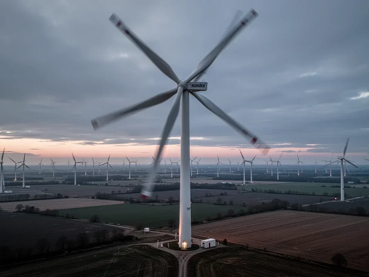 Das operative Jahr 2025 war außergewöhnlich: Der Umsatz kletterte auf 7,55 Milliarden Euro, der Gewinn legte um rund 3.000 Prozent zu. Beim Auftragseingang summierte sich das Volumen auf 10.214 Megawatt — ein Plus von 22,5 Prozent gegenüber dem Vorjahr. Für 2026 peilt Nordex einen Konzernumsatz zwischen 8,2 und 9,0 Milliarden Euro an, bei einer EBITDA-Marge von 8,0 bis 11,0 Prozent.
