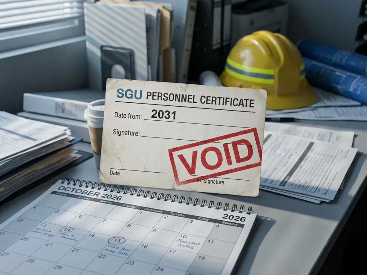Der 31. Oktober 2026 markiert das Ende für alle Sicherheits-, Gesundheits- und Umweltpersonalzertifikate (SGU), die nach dem alten SCC-2011-Standard (Dokumente 016, 017, 018) vor November 2021 ausgestellt wurden. Ein Arbeiter, dessen Zertifikat „gültig bis Januar 2031″ aufgedruckt hat, wird fünf Jahre früher zur Neuprüfung verpflichtet sein. Zertifizierungsstellen und Branchenverbände schlagen seit dieser Woche Alarm.
