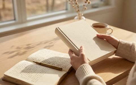 * Analoges Lesen und Schreiben mit physischen Büchern und handschriftlichen Journals.