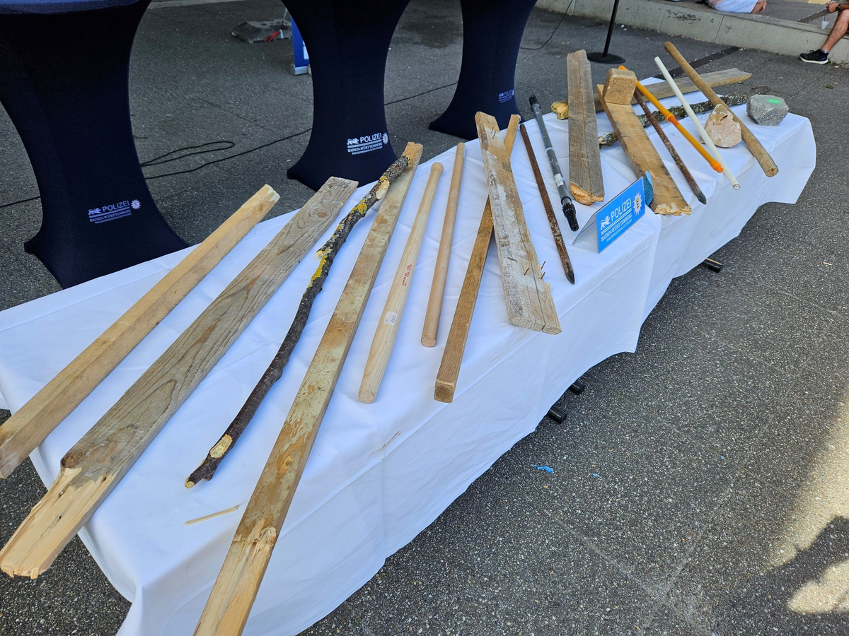 17.09.2023 - 16:27:45 | dpa.deSie liegen sorgsam aneinandergereiht da, die Polizei hat die Gegenstände öffentlichwirksam hindrapiert, die zu Waffen und Wurfgeschossen wurden. Lange Holzlatten, teils mit Nägeln durchsetzt. Dicke Aste, Steine, so groß wie ein Kopf. Der Stuttgarter Vizepolizeipräsident steht schockiert daneben.