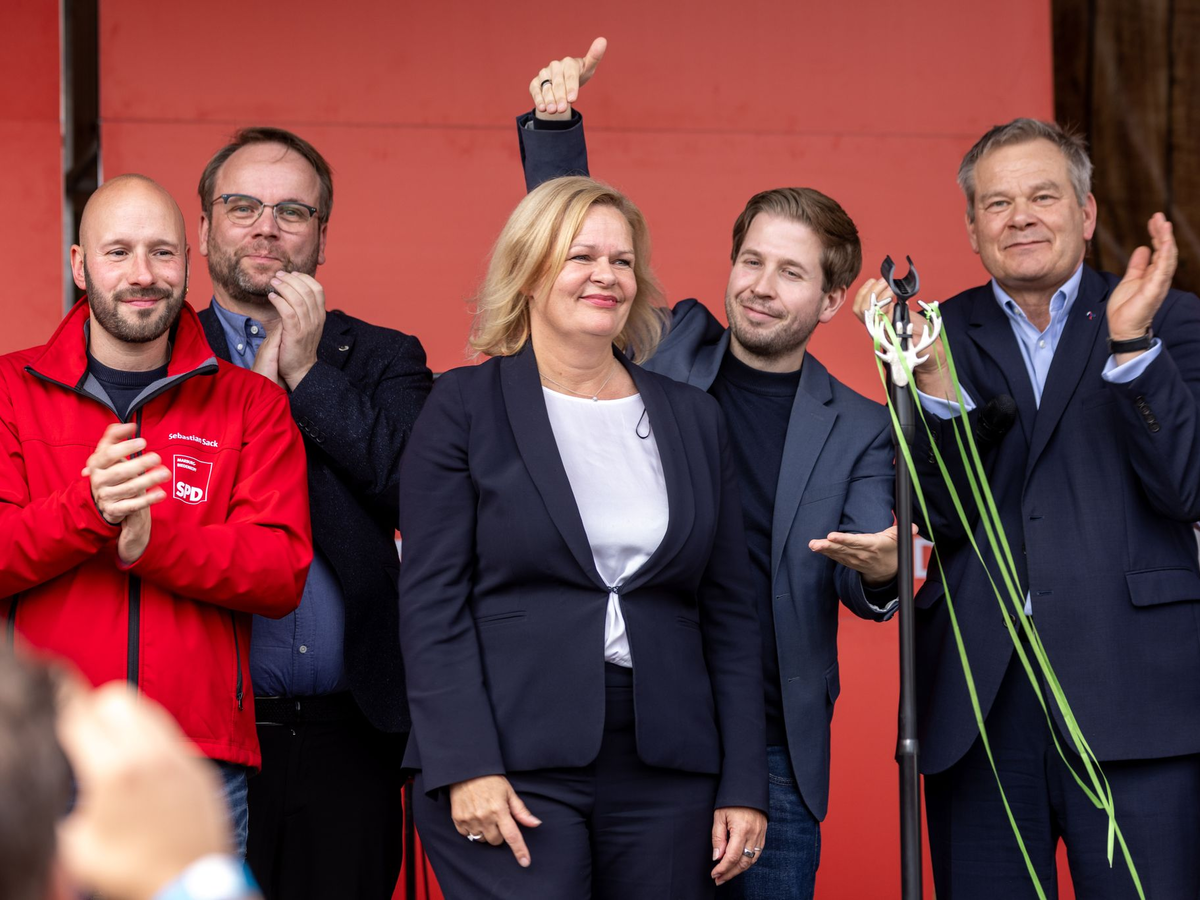 Faeser erklärte, die SPD sei die einzige Partei, «die immer in der Geschichte der Bundesrepublik Deutschland auf der richtigen Seite» gestanden habe. «Wo ist denn der Schutzschirm dieses Ministerpräsidenten zur AfD?», fügte Faeser mit Blick auf Äußerungen von Hessens Ministerpräsident Boris Rhein (CDU) hinzu, der im Wahlkampf einen Schutzschirm gegen die im Bund regierende Ampel-Koalition aus SPD, Grünen und FDP angekündigt hatte.
