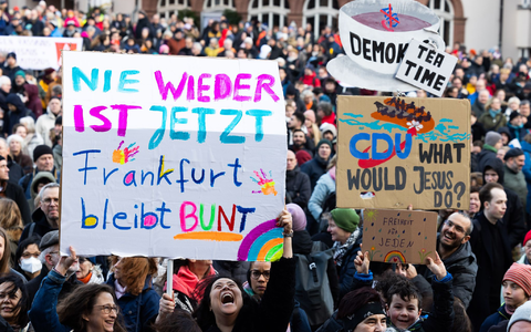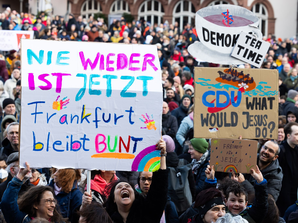 Auch am Montag gingen die Demontsrationen weiter. In Frankfurt folgten nach Angaben eines Polizeisprechers etwa 18.000 Menschen dem Aufruf eines breiten gesellschaftlichen Bündnisses unter dem Motto «Frankfurt steht auf für Demokratie». Die Veranstalter selbst sprachen sogar von insgesamt 25.000 Menschen.