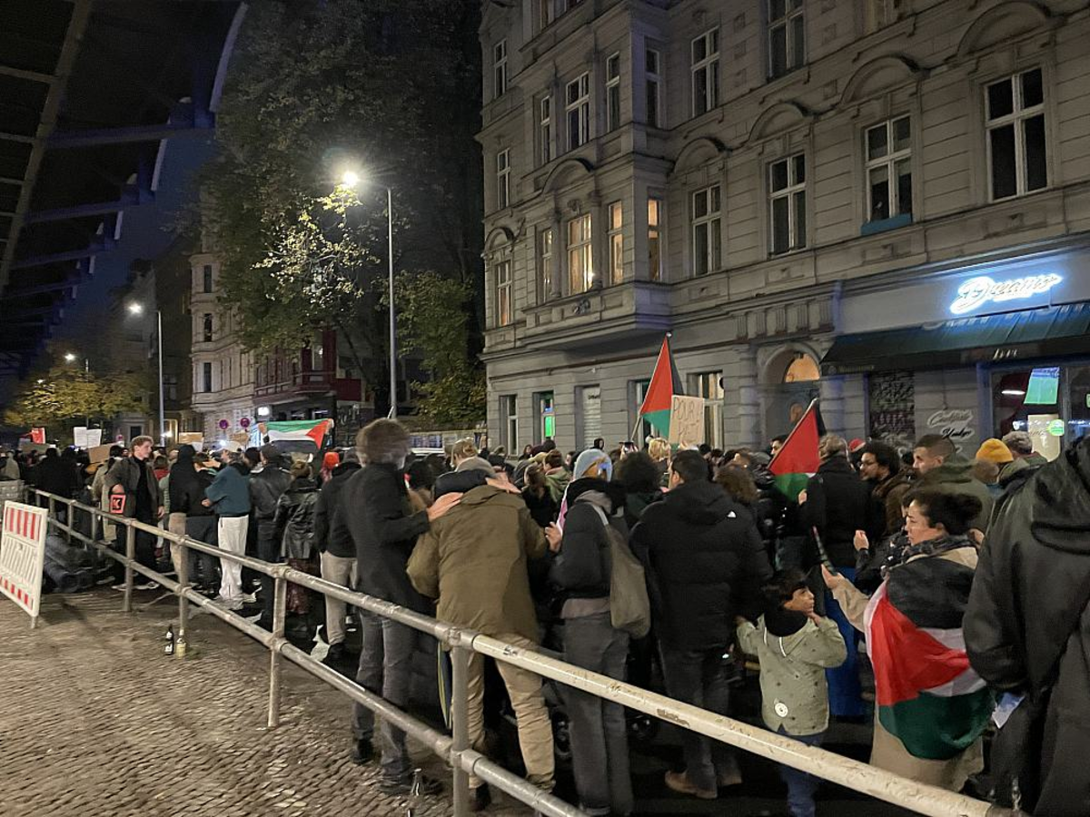 Vereinzelt seien Plakate beschlagnahmt worden, um sie auf mögliche Verstöße zu prüfen, hieß es. Auch seien über 50 Menschen in Gewahrsam genommen und Platzverweise ausgesprochen worden. Am Freitag waren bei einer Kundgebung in Essen offenbar islamistische Banner gezeigt worden. Die Staatsanwaltschaft prüfe entsprechende Videos, so NRW-Innenminister Herbert Reul (CDU). Einige Reporter meldeten, dass sie teilweise von Demonstrationsteilnehmern an der Berichterstattung behindert worden seien. Die Polizei Berlin hatte für eine Veranstaltung am Samstag im Zentrum Berlins extra "Schutzbereiche für Medienschaffende" eingerichtet.