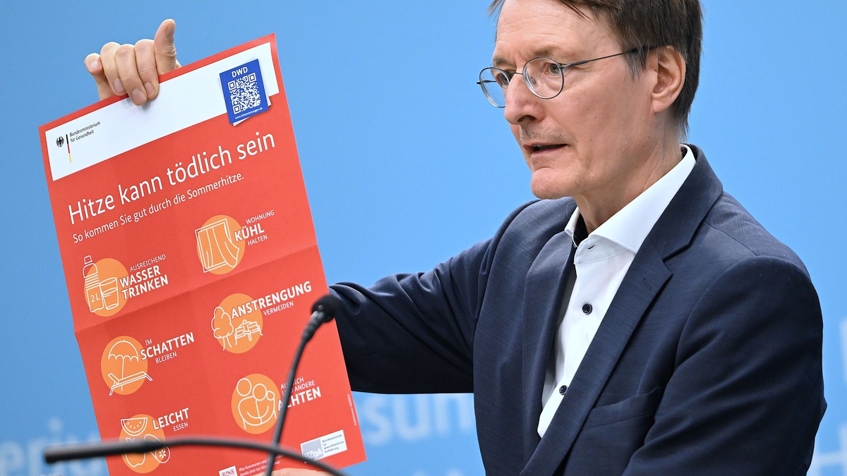 24.05.2024 - 15:58:10 | dpa.deVorbereitungen in Kliniken und Pflegeheimen, Aufklärung zur Fußball-Europameisterschaft in Deutschland: Bundesgesundheitsminister Karl Lauterbach hat für den Sommer zu stärkerer Vorbeugung gegen Gesundheitsschäden und Tote durch Hitze aufgerufen.