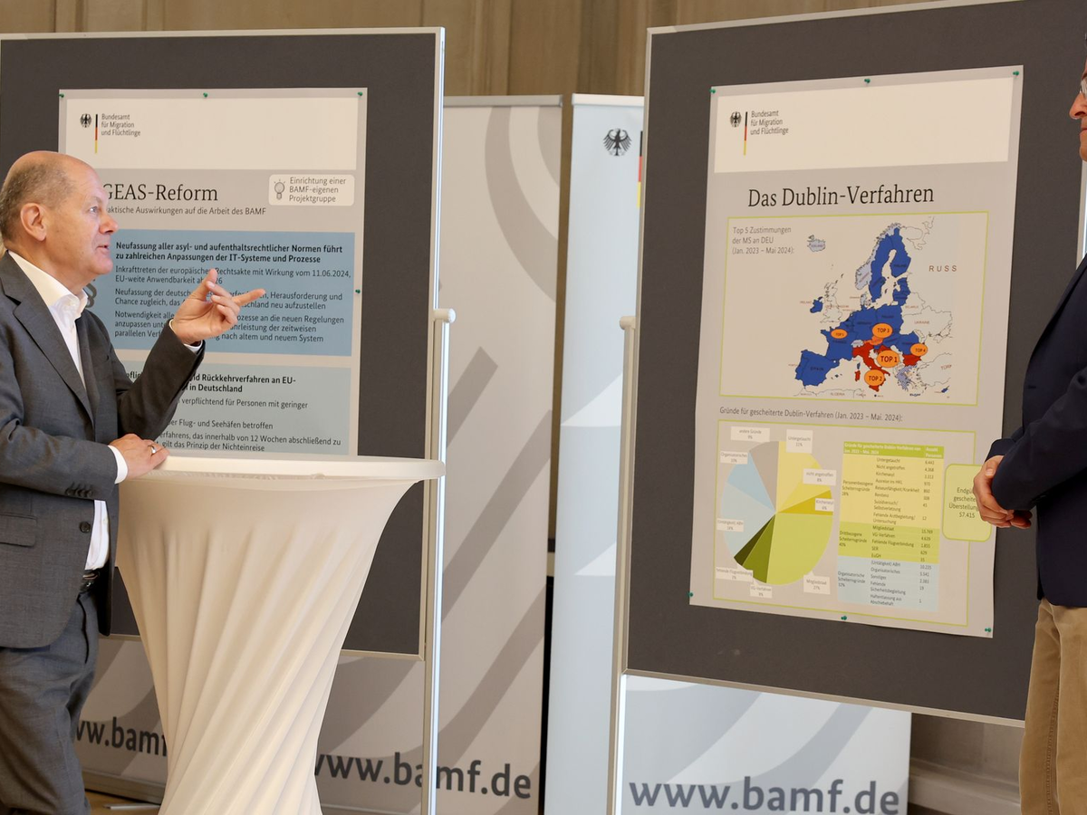 Scholz mahnte seinerseits mehr Tempo bei der Bearbeitung von Asylanträgen an. Dies sei entscheidend, auch für die Akzeptanz in der Bevölkerung. «Wir müssen dafür Sorge tragen, dass wir State of the Art sind», sagte der Kanzler mit Blick auf die Digitalisierung. Es müsse dafür Sorge getragen werden, dass die digitale Geschwindigkeit hoch bleibe, auch künstliche Intelligenz spiele eine Rolle. Eine entscheidende Frage sei die Ausstattung des Bundesamtes mit ausreichend Personal. Sowohl im zurückliegenden Bundeshaushalt als auch im neuen Haushalt sei dies berücksichtigt worden.