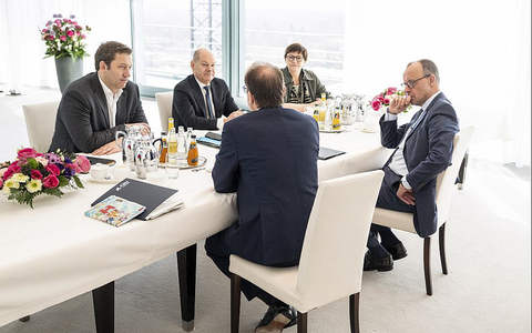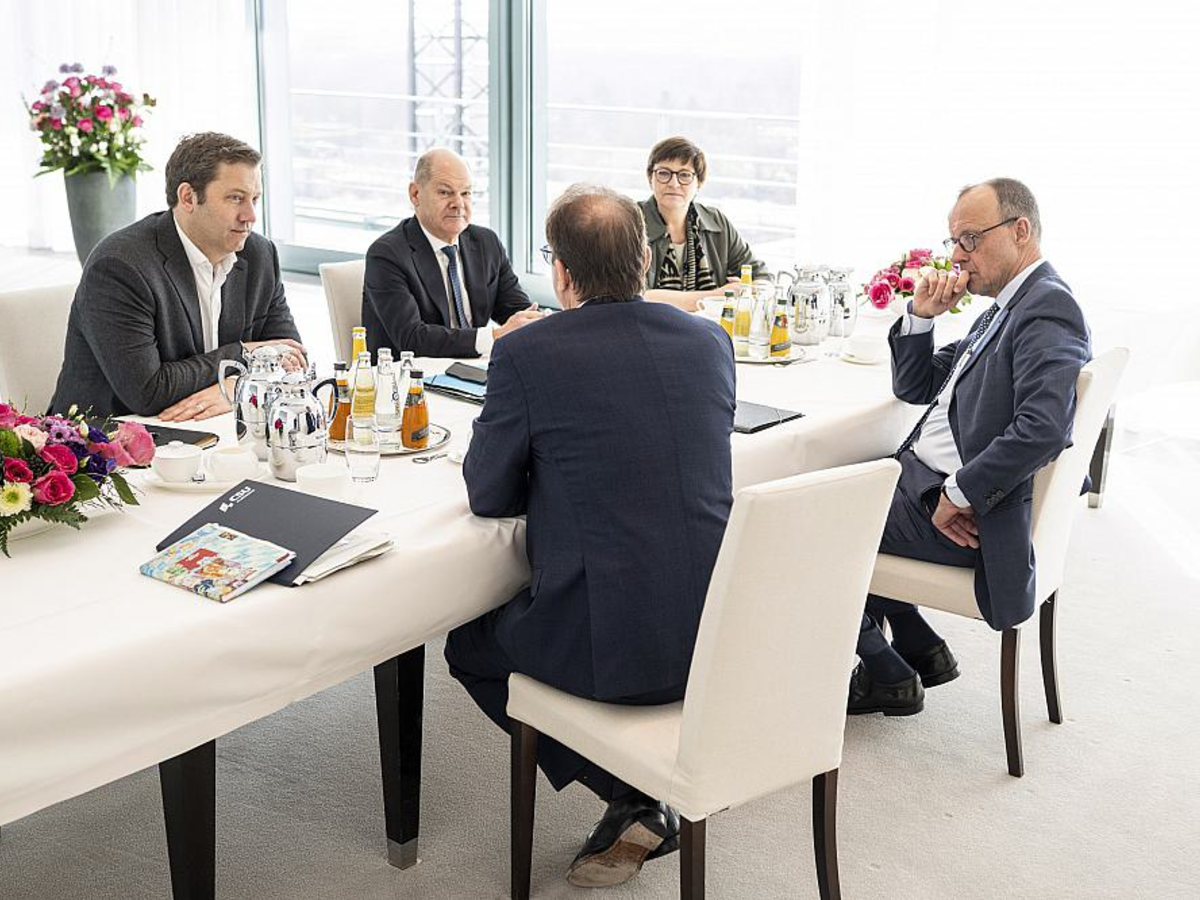 "Aber das ist jetzt Sache von Saskia Esken und Lars Klingbeil." Dennoch verfolgt Scholz die Gespräche genau: "Der Bundeskanzler hat ja einen sehr leidenschaftlichen Wahlkampf gemacht, mit all den Themen, die ihm wichtig gewesen sind, und je mehr dieser Themen dann auch in den Sondierungen berücksichtigt werden, umso zufriedener ist er", sagte der Regierungssprecher. Grundsätzlich begrüße er auch die Finanzeinigung von Union und SPD. Es sei eine Regelung, "mit der er in den Wahlkampf gegangen ist". Scholz hatte am Mittwochvormittag CDU-Chef Friedrich Merz und CSU-Landesgruppenchef Alexander Dobrindt sowie Esken und Klingbeil im Kanzleramt empfangen. Dabei ging es laut Hebestreit um ein Briefing zum Londoner Ukraine-Gipfel vom Sonntag sowie auch um den am Donnerstag anstehenden EU-Gipfel in Brüssel.