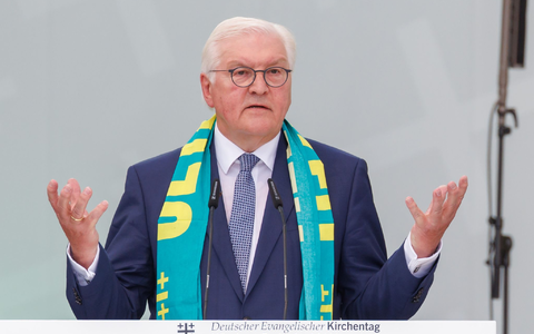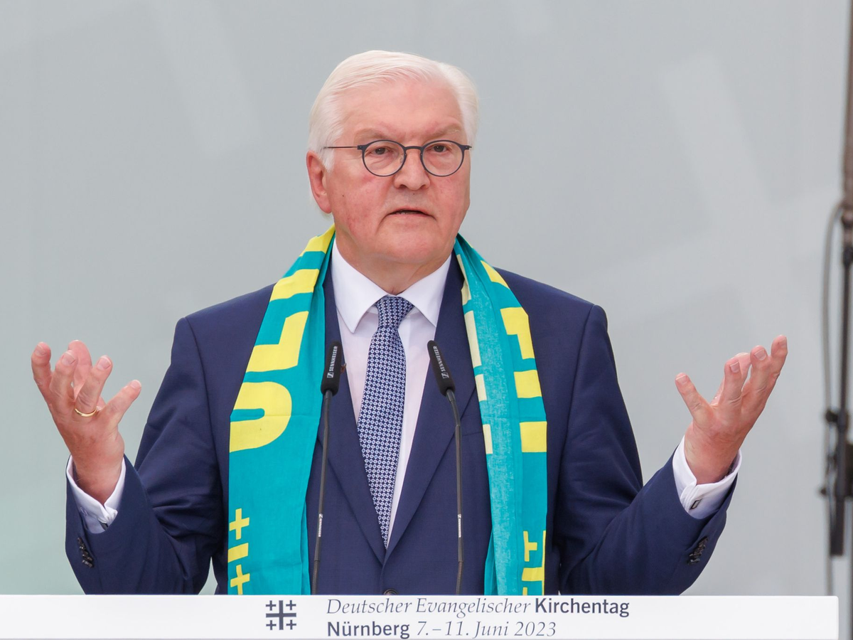 Bundespräsident Frank-Walter Steinmeier hält beim Deutschen Evangelischen Kirchentag eine humorvolle Rede. - Foto: Daniel Karmann/dpa