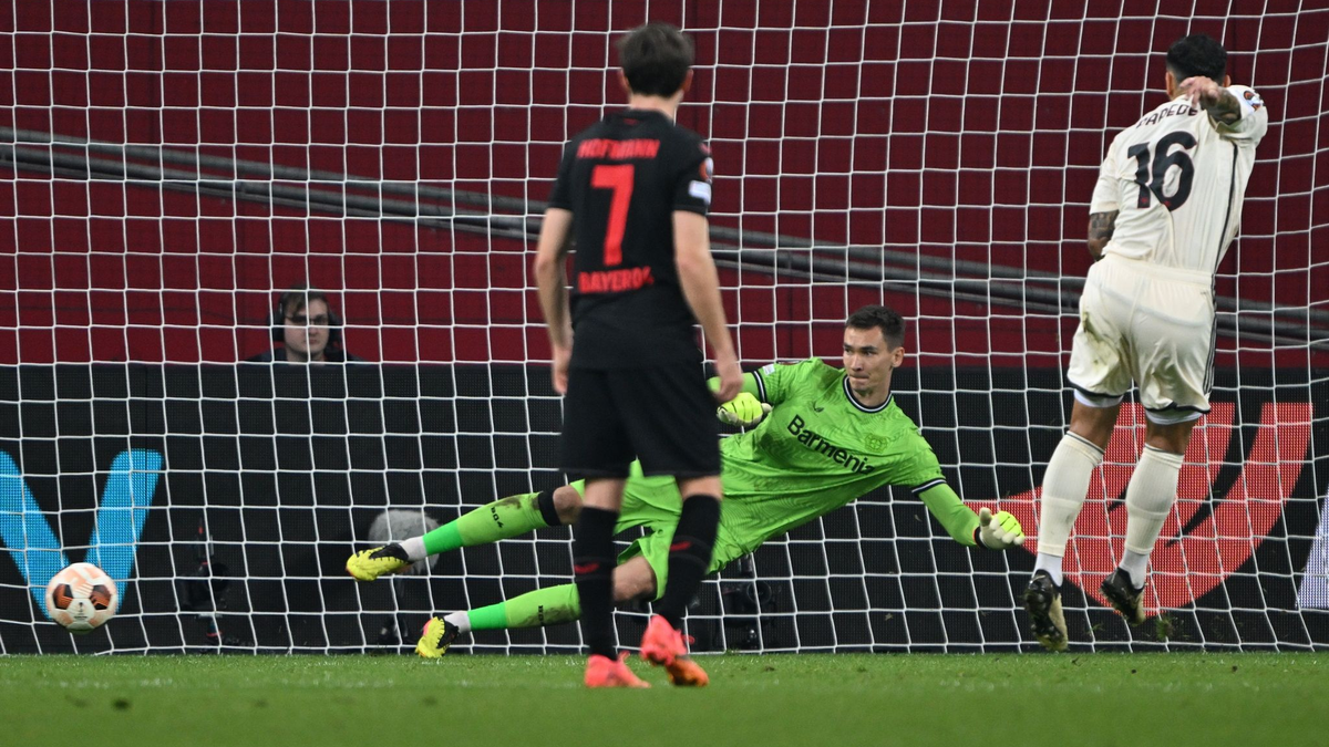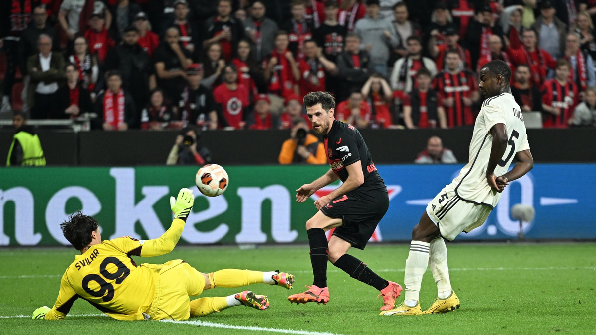 Denn auch im 49. Pflichtspiel der Saison blieb Bayer ungeschlagen - weil Josip Stanisic weit in der Nachspielzeit (90.+7) zum 2:2 gegen die AS Rom traf und sich die Sorgen nach dem zwischenzeitlichen 0:2-Rückstand endgültig in Luft auflösten. Bayer war zwar drückend überlegen, doch Leandro Paredes glich das 2:0 aus dem Hinspiel in Rom durch einen Foulelfmeter (43.) und einen Handelfmeter (66.) aus. Ein Eigentor von Gianluca Mancini (83.) brachte Bayer dann doch noch in die Spur und sorgte für eine erfolgreiche Revanche nach dem Halbfinal-Aus im Vorjahr gegen die Roma.