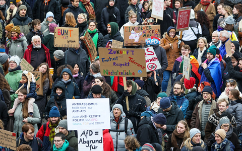 04.02.2024 - 14:57:59 | dpa.deSeit Wochen reißen die Proteste gegen Rechtsextremismus in Deutschland nicht ab - auch am Wochenende sind Hunderttausende auf die Straßen gegangen, um ein Zeichen gegen rechts zu setzen. In Berlin versammelten sich nach Polizeiangaben am Samstag mehr als 150.000 Menschen vor dem Reichstagsgebäude, um für Demokratie und Toleranz, gegen rechts, Hass und die AfD zu demonstrieren. Der Veranstalter, ein Bündnis namens «Hand in Hand», sprach von 300.000 Teilnehmern.