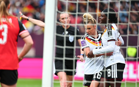 Emotional wurde es kurz vor Anpfiff, als die im Oktober aus der DFB-Elf zurückgetretene Sara Däbritz verabschiedet wurde. Für die 31 Jahre alte Mittelfeldspielerin von Real Madrid, 2013 Europameisterin und 2016 Olympiasiegerin, gab's zum Abschied nach 111 Länderspielen und 18 Toren Blumen von Sportdirektorin Nia Künzer und DFB-Präsident Bernd Neuendorf.