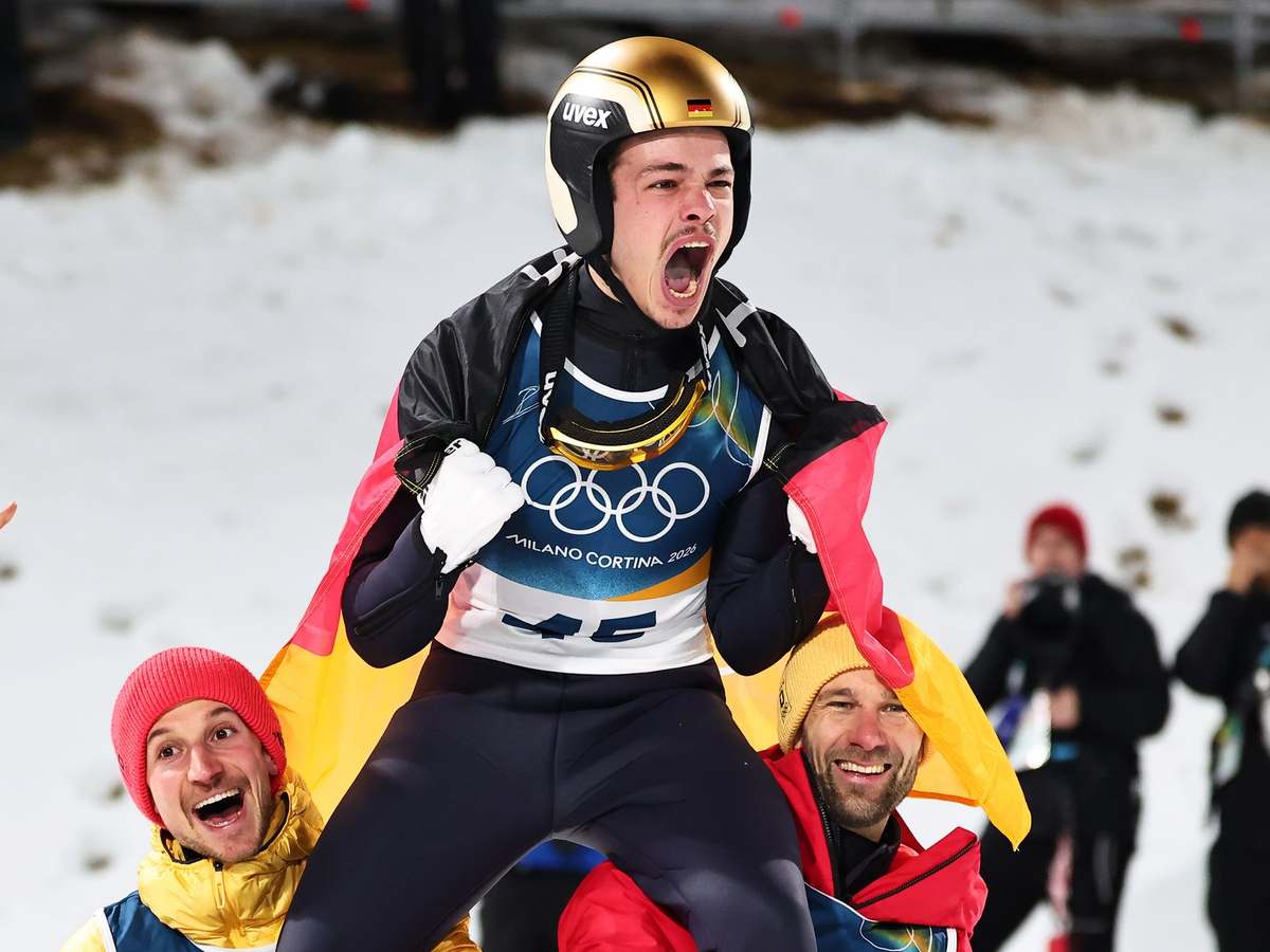 09.02.2026 - 21:26:49 | dpa.deAuf den Schultern seiner Teamkollegen brüllte Philipp Raimund seine Freude über die olympische Gold-Sensation heraus. «Jaaaa», schrie der Skispringer in den Abendhimmel von Predazzo. Die schwarz-rot-goldene Fahne hing ihm triumphal über den Schultern. «Ich weiß nicht, wie ich es gemacht habe. Aber ich bin so, so stolz drauf, dass ich das geschafft habe», sagte der völlig überwältigte Champion in der ARD. «Jetzt bin ich einfach Olympiasieger. Das ist unglaublich.»