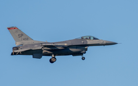 Ein Kampfflugzeug vom Typ F-16 während eines Übungsflugs. - Foto: Harald Tittel/dpa