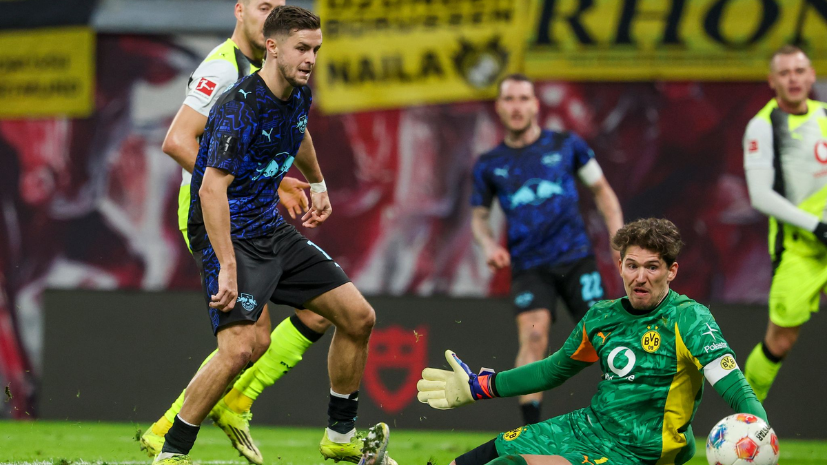Vor 47.800 Fans avancierte Christoph Baumgartner schon in der ersten Halbzeit zum Leipziger Helden. Der Top-Scorer der Sachsen schloss zweimal den nahezu identischen Spielzug ab, sorgte mit Toren in der 20. und 39. Minute fĂŒr die hochverdiente Halbzeit-FĂŒhrung. Leipzig brachte Dortmund zurĂŒck ins Spiel, Romulo (50.) unterlief ein Eigentor. In der fĂŒnften Minuten der Nachspielzeit gelang Fabio Silva der Ausgleich nach Zuspiel von Karim Adeyemi.