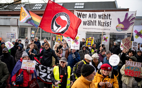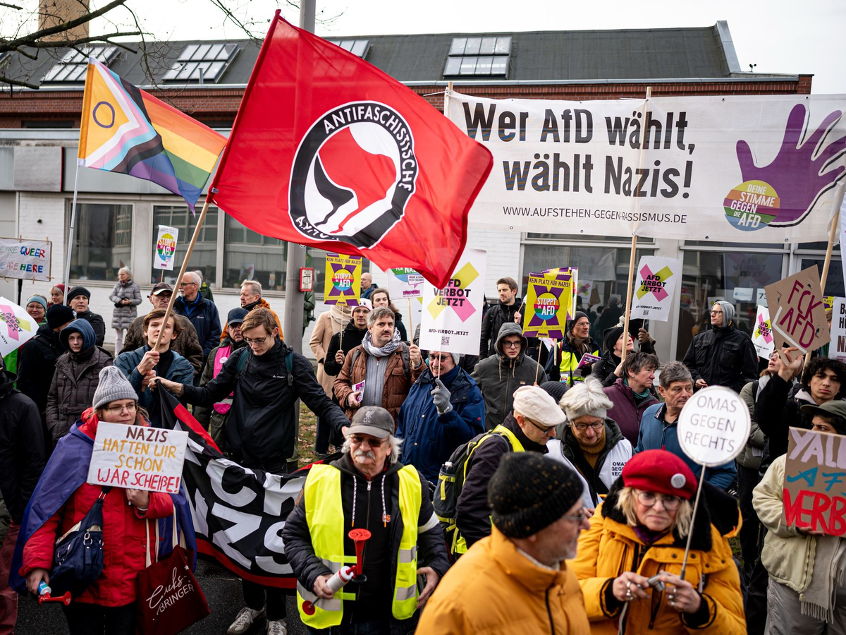 Ganz ungestört lief die Veranstaltung der AfD in deren Bundesgeschäftsstelle im Norden Berlins nicht ab. Direkt vor dem Gebäude, das mit Zäunen und Sichtschutz gesichert war, versammelten sich nach Polizeiangaben etwa 200 Menschen mit Plakaten und Fahnen und protestierten gegen die AfD und die Nominierung von Weidel. Sie forderten ein «AfD-Verbot jetzt» und riefen in Sprechchören «Alle zusammen gegen den Faschismus». Größere Zwischenfälle gab es der Polizei zufolge keine.