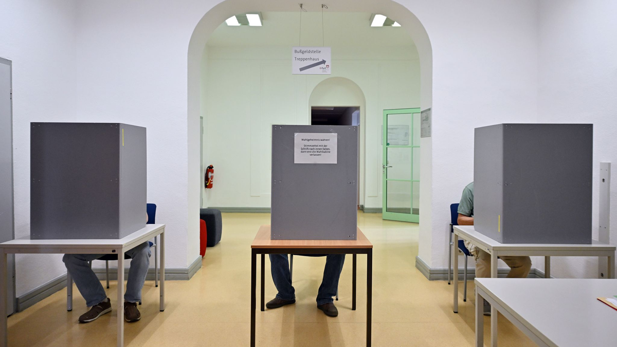 In Thüringen steigert sich den Hochrechnungen zufolge die AfD auf 31,2 bis 33,1 Prozent (2019: 23,4 Prozent), die CDU landet bei 24,3 bis 24,5 Prozent (21,7). Aus dem Stand schafft das BSW 15,0 bis 15,7 Prozent - und lässt damit die Linke von Ministerpräsident Bodo Ramelow weit hinter sich, die dramatisch auf 11,7 bis 12,4 abstürzt (31,0). Starke Verluste verbuchen die Parteien der Berliner Ampel-Regierung: Die SPD liegt mit 6,6 bis 6,8 Prozent noch unter ihrem bislang schlechtesten Ergebnis in Thüringen von 2019 (8,2). Die Grünen scheiden mit 3,8 bis 4,0 (5,2) aus dem Parlament aus, ebenso die FDP, für die keine eigenen Ergebnisse ausgewiesen wurden.