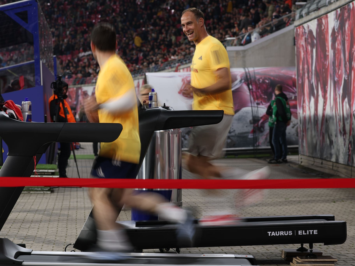 RB-Chef Mintzlaff parallel zum Spiel auf dem Laufband