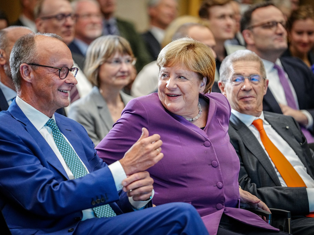 Merz würdigte in seiner Begrüßungsrede Merkels politisches Wirken. Er betonte ihren Drang nach Freiheit und ihre wissenschaftliche Neugier. Vor allem in der Euro-Krise und während der Corona-Pandemie habe sie entscheidend zum Zusammenhalt Europas beigetragen.