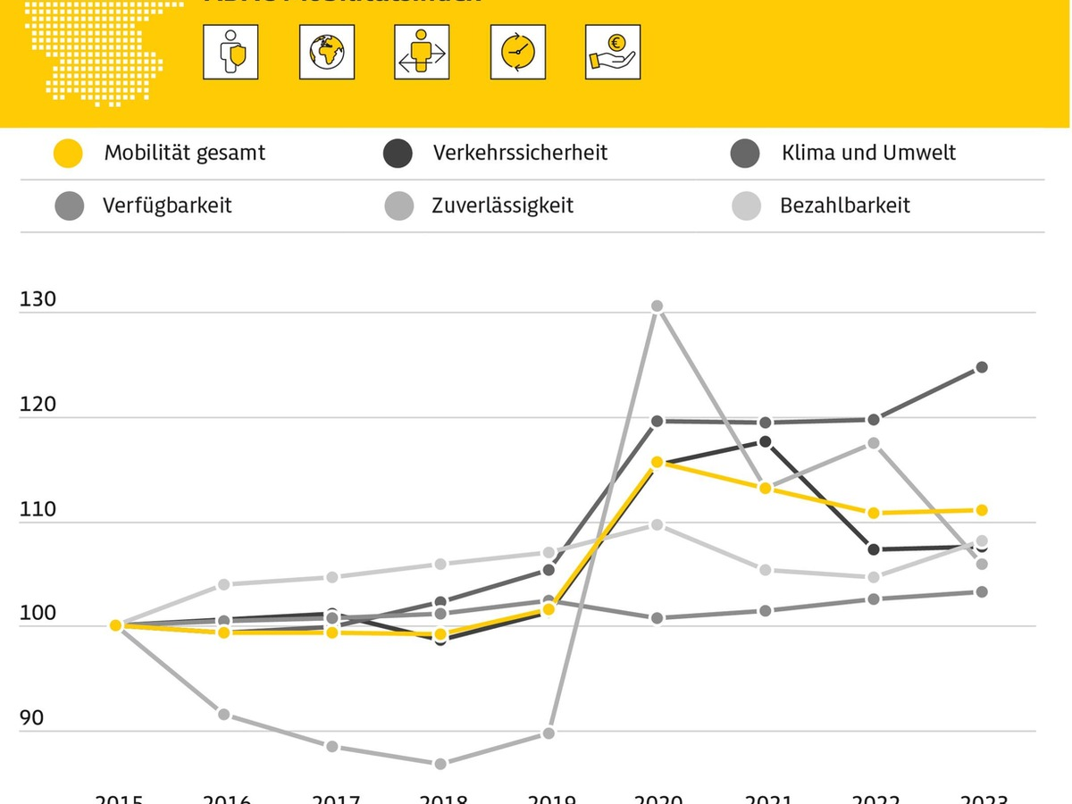 Nachhaltigkeit im Verkehrssektor kommt nicht voran / ADAC MobilitĂ€tsindex gegenĂŒber Vorjahr praktisch unverĂ€ndert / Teilweise Verbesserungen bei Klima und Umwelt, Bezahlbarkeit und Verkehrssicherheit