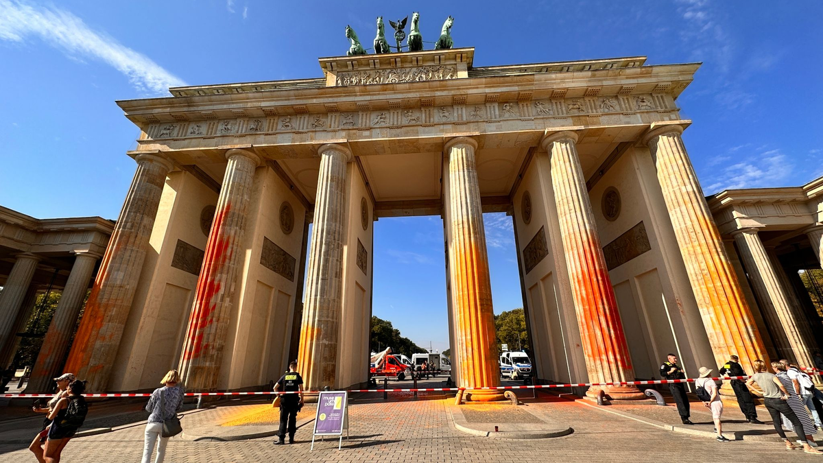Säulen in Orange: Auch das Brandenburger Tor wurde im vergangenen Jahr zum Ziel der Klimaaktivisten. (Archivbild) - Foto: Paul Zinken/dpa