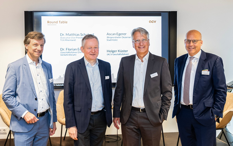 02.10.2025 - 12:29:39 | presseportal.deMit dem neuen Veranstaltungsformat "ACV Connect" schafft der ACV Automobil-Club Verkehr ein Forum für den persönlichen Austausch zu Themen rund um Mobilität und Verkehr. Unter dem Leitmotiv "Verkehrswende im Fokus - Globale Strategien, deutsche Debatten, lokale Lösungen" diskutierten am 25. September 2025 Vertreter aus Wirtschaft, Politik, Verbänden und Medien in der Kölner ACV Zentrale. Auf dem Podium saßen Dr. Matthias Schubert, Vice President Mobility beim TÜV Rheinland, Dr. Florian Eck, Geschäftsführer des Deutsches Verkehrsforums (DVF), Ascan Egerer, Verkehrsdezernent der Stadt Köln, sowie ACV Geschäftsführer Holger Küster. Durch den Abend führte Radiomoderator Michael Imhof.