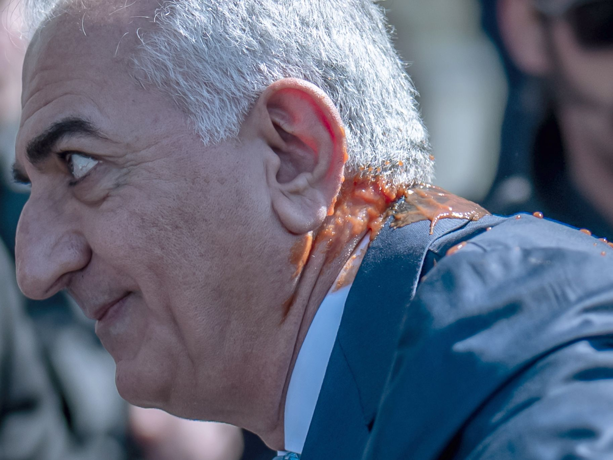 Aus Pahlavis Team hieß es, er sei mit Tomatensoße bespritzt worden. Die Polizei berichtete, der festgenommene Mann sei bisher polizeilich nicht in Erscheinung getreten. Gegen ihn werde wegen Körperverletzung, Sachbeschädigung und Beleidigung von Personen des politischen Lebens ermittelt. «Unsere Einsatzkräfte wurden sensibilisiert und die Sicherheitsmaßnahmen für den Gast nochmal angepasst», erklärte die Polizei.