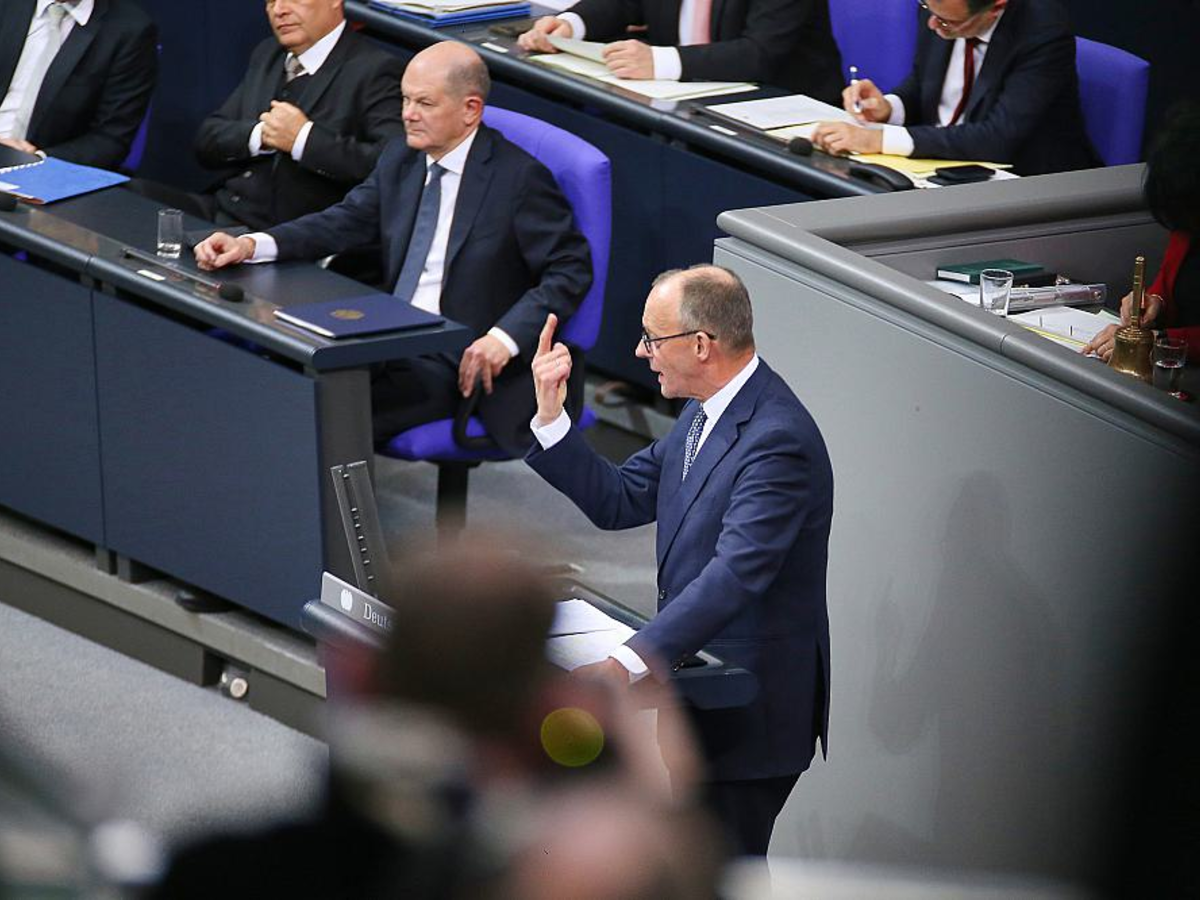 "Aber deswegen die Schuldenbremse zu lockern, aufzuheben, das Grundgesetz zu ändern, für drei Milliarden Euro? Auf gar keinen Fall." Das sei "der durchsichtige Versuch des Bundeskanzlers, uns eine Falle zu stellen", so Merz weiter. "Da tappen wir nicht rein." Er erkenne darin "ein Muster, das wir bei den Sozialdemokraten immer wieder gesehen haben", so Merz." In dem Augenblick, in dem die Alternativen lauten: staatspolitische Verantwortung oder innenpolitischer Geländegewinn, entscheiden sich diese SPD und dieser Bundeskanzler in der Regel für die zweite."