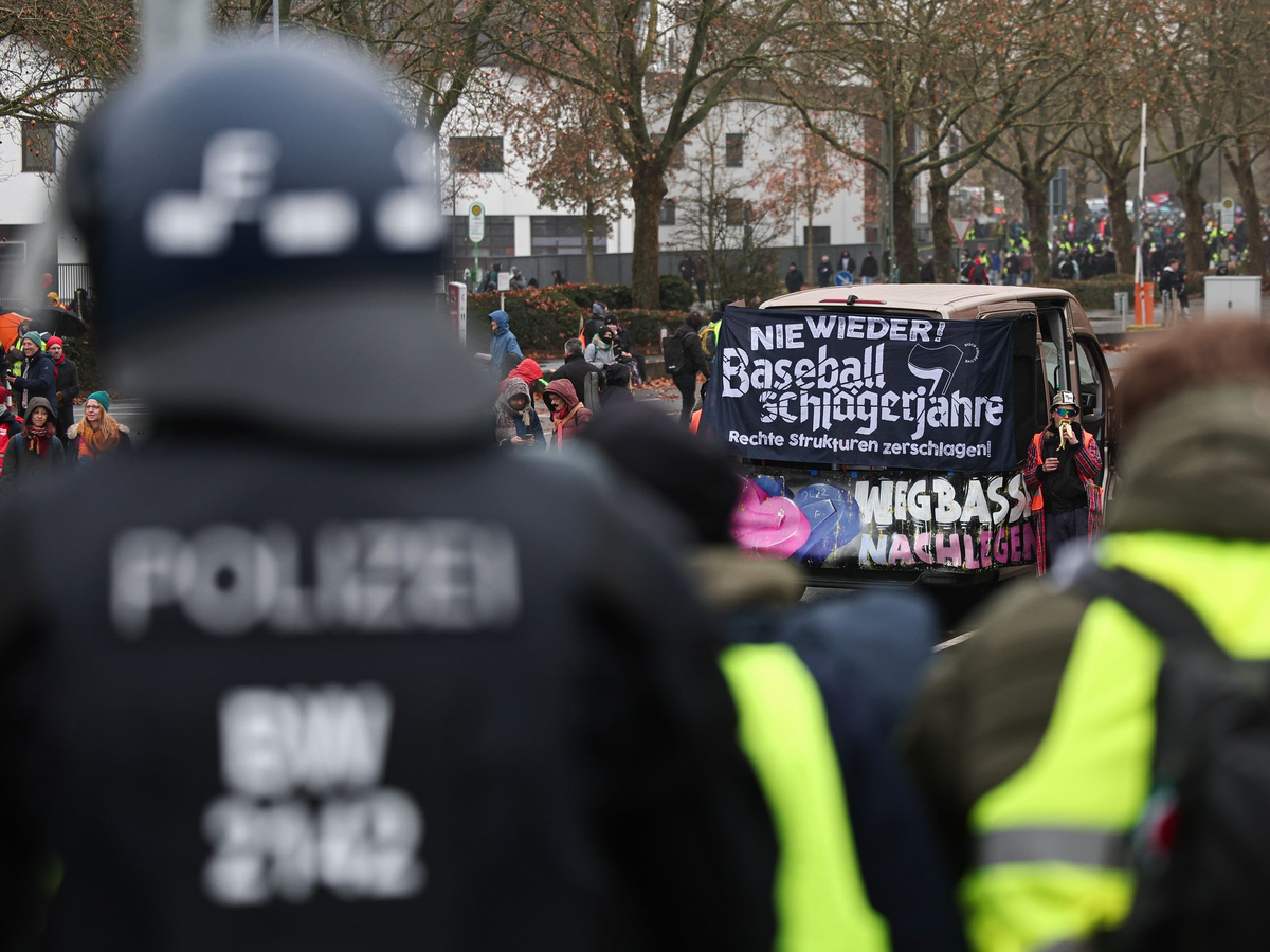 Bundesinnenminister Alexander Dobrindt betonte: «Demonstrieren ist ein Grundrecht, deswegen muss man das ermöglichen. Sich versammeln ist auch ein Grundrecht, das muss man auch ermöglichen», sagte der CSU-Politiker in einer Rede beim Landesparteitag der sächsischen CDU in Leipzig. «Aber ich kann nur sagen: Größten Respekt vor den Polizistinnen und Polizisten, wenn ich jetzt schon wieder sehe, wie Vermummte, wie Chaoten, wie Leute mit Bengalos, mit Fackeln, gewaltbereit auf die Polizei zugehen.»