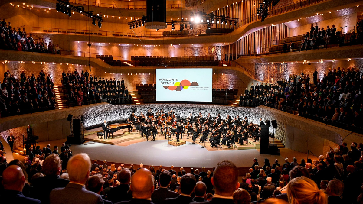 Beim zentralen Festakt zum Tag der Deutschen Einheit hat Bundesratspräsident Peter Tschentscher an den Gemeinsinn der Deutschen in Krisenzeiten appelliert. Nur ein starkes demokratisches Deutschland könne Verantwortung übernehmen für ein starkes Europa, das sich für Frieden, Demokratie und Menschenrechte einsetze, sagte Hamburgs Erster Bürgermeister vor rund 1300 Gästen in der Elbphilharmonie.