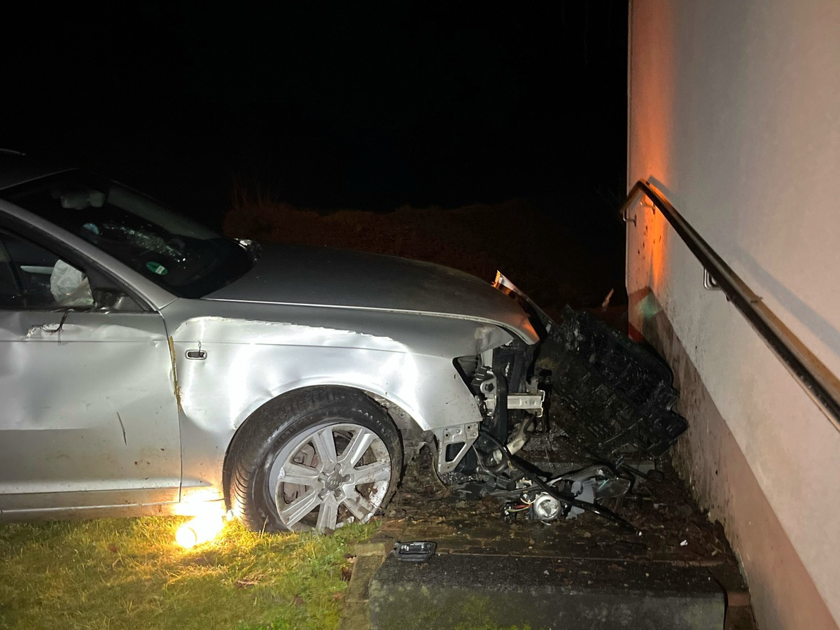 Wiehl - Am Samstagabend (22. Februar, 19:25 Uhr) ist ein 34-jähriger Autofahrer aus Waldbröl mit seinem Audi von der Straße abgekommen und gegen ein Haus gekracht. Der 34-Jährige fuhr auf der L133 aus Dreisbach kommend in Richtung Oberwiehl. Nachdem er noch ein Auto vor sich überholt hatte, kam er in einer Linkskurve, nahe der Siefener Straße, nach rechts von der Fahrbahn ab. Daraufhin kollidierte er mit einem Verkehrszeichen, durchbrach eine Hecke, touchierte einen Baum und stieß mit der Außenwand eines Hauses zusammen. Bei der Unfallaufnahme stellten die Polizisten Alkoholgeruch bei dem 34-Jährigen fest. Ein Atemalkoholtest fiel positiv aus. Zudem ergaben sich Hinweise auf Drogenkonsum. Der 34-Jährige musste auf der Wache eine Blutprobe und seinen Führerschein abgeben.