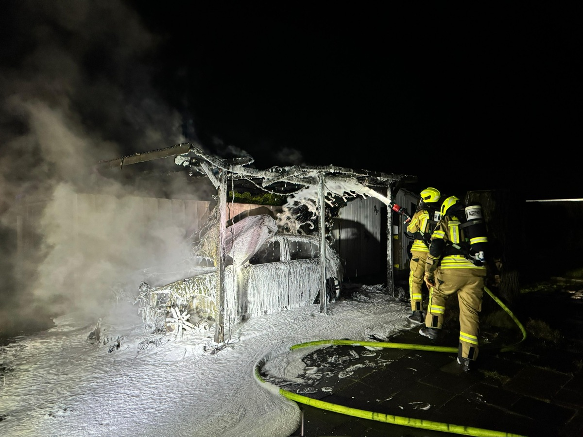 FW Alpen: Pkw und Carport brennen mitten in der Nacht