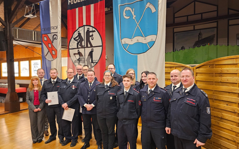 Befördert wurden zur Oberfeuerwehrfrau Christina Roth, zum Oberfeuerwehrmann Finn Schulte und Kilian Rapude, zum Hauptfeuerwehrmann Dustin Lietz und Lucas Weidlich, zur Unterbrandmeisterin Maria Klauke und zum Hauptbrandmeister Sebastian Niggemann.